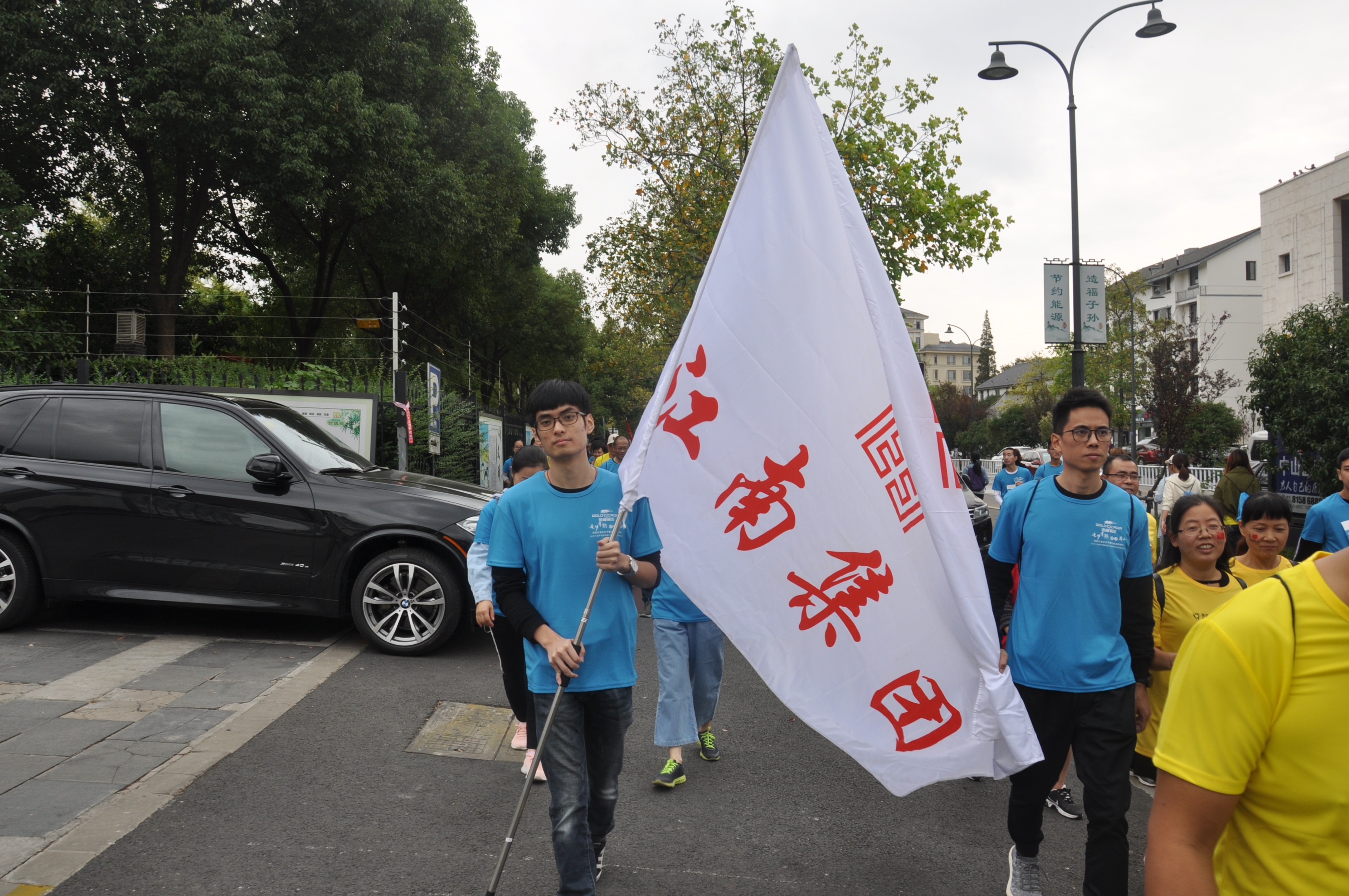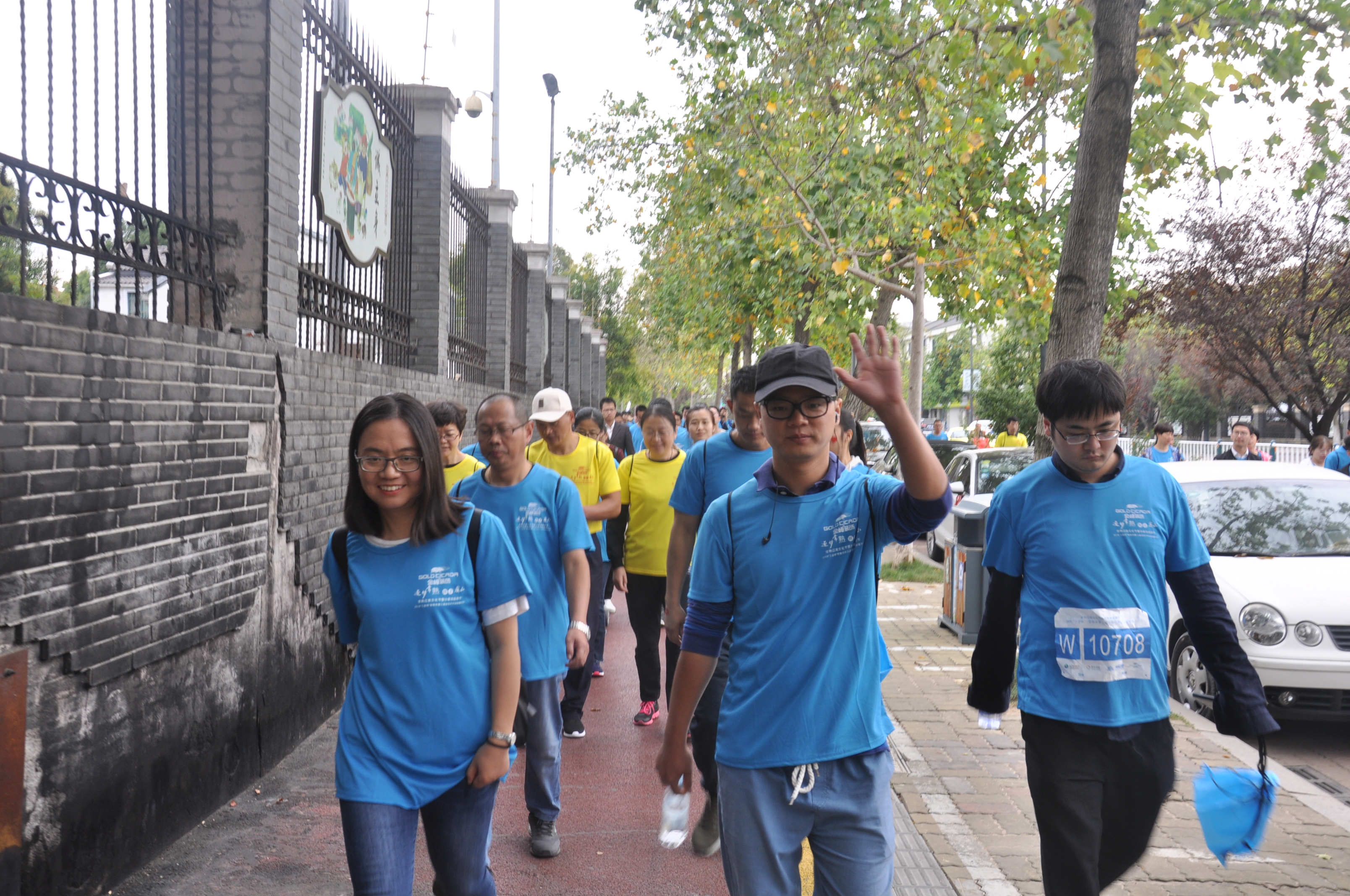 在長約5公里的徒步路上,大家統(tǒng)一穿著藍色運動服,個個精神抖擻,臉上洋溢著快樂的笑容,有的步伐矯健,有的步調(diào)輕盈,有的走走歇歇,只為記錄下身邊的美麗風景,順利走完了全程。