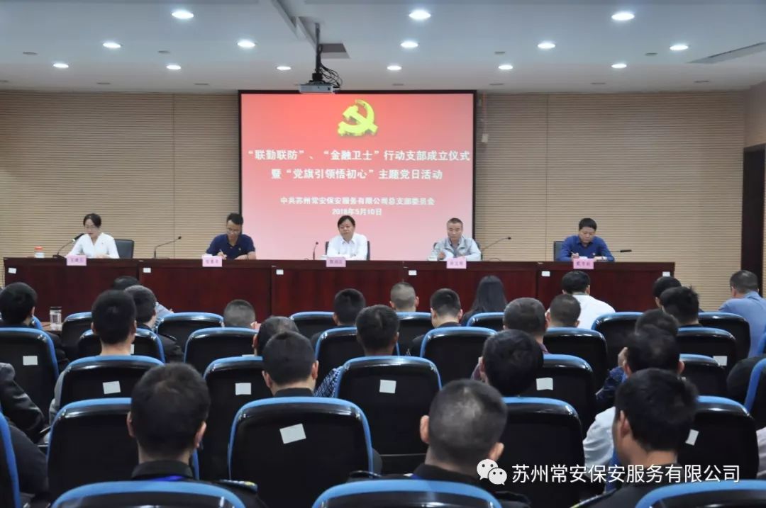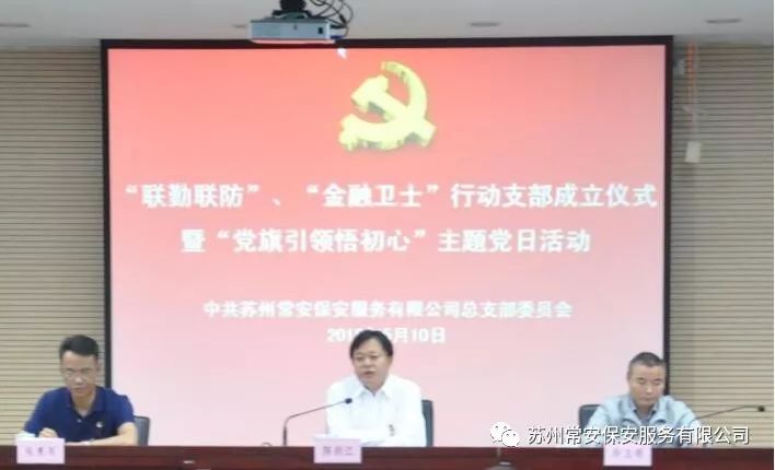 為深入貫徹落實(shí)黨的十九大精神,培育國企黨建品牌,積極營造“不忘初心 牢記使命”主題教育氛圍。 蘇州常安保安服務(wù)有限公司黨總支部于5月10日舉行“聯(lián)勤聯(lián)防”、“金融衛(wèi)士”行動(dòng)支部成立儀式暨“黨旗引領(lǐng)悟初心”主題黨日活動(dòng)。