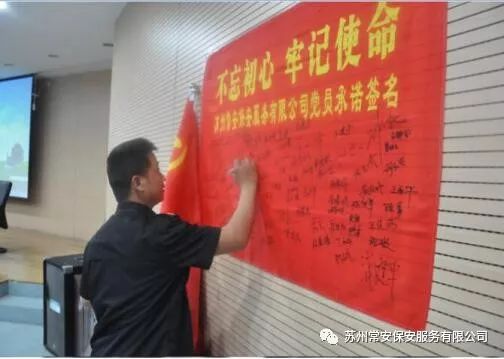 會(huì)后,保安公司黨員還進(jìn)行了“不忘初心、牢記使命”集體簽名承諾,并集中交納了一個(gè)月黨費(fèi)。