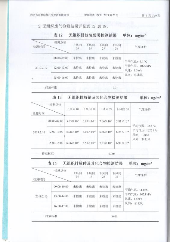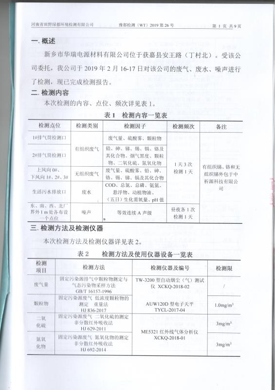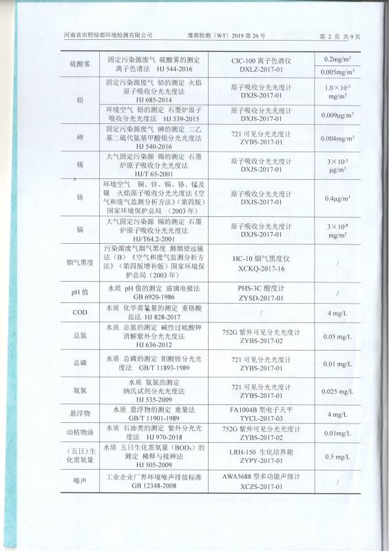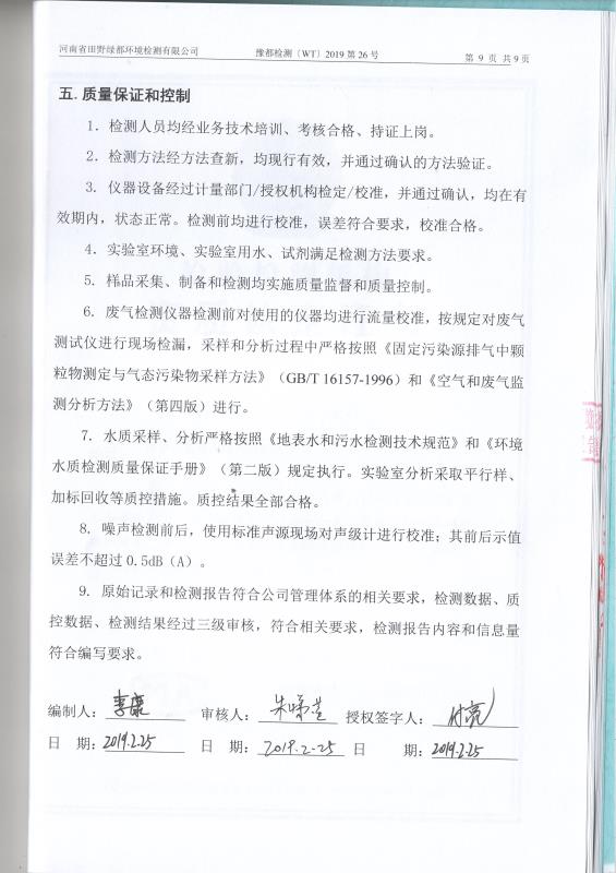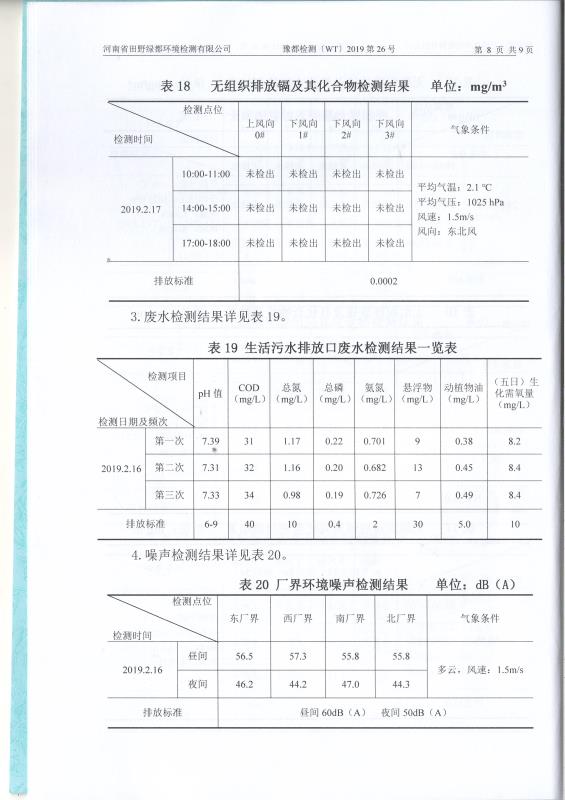 2019年2月田野綠都廢水廢氣噪聲檢測(cè)報(bào)告