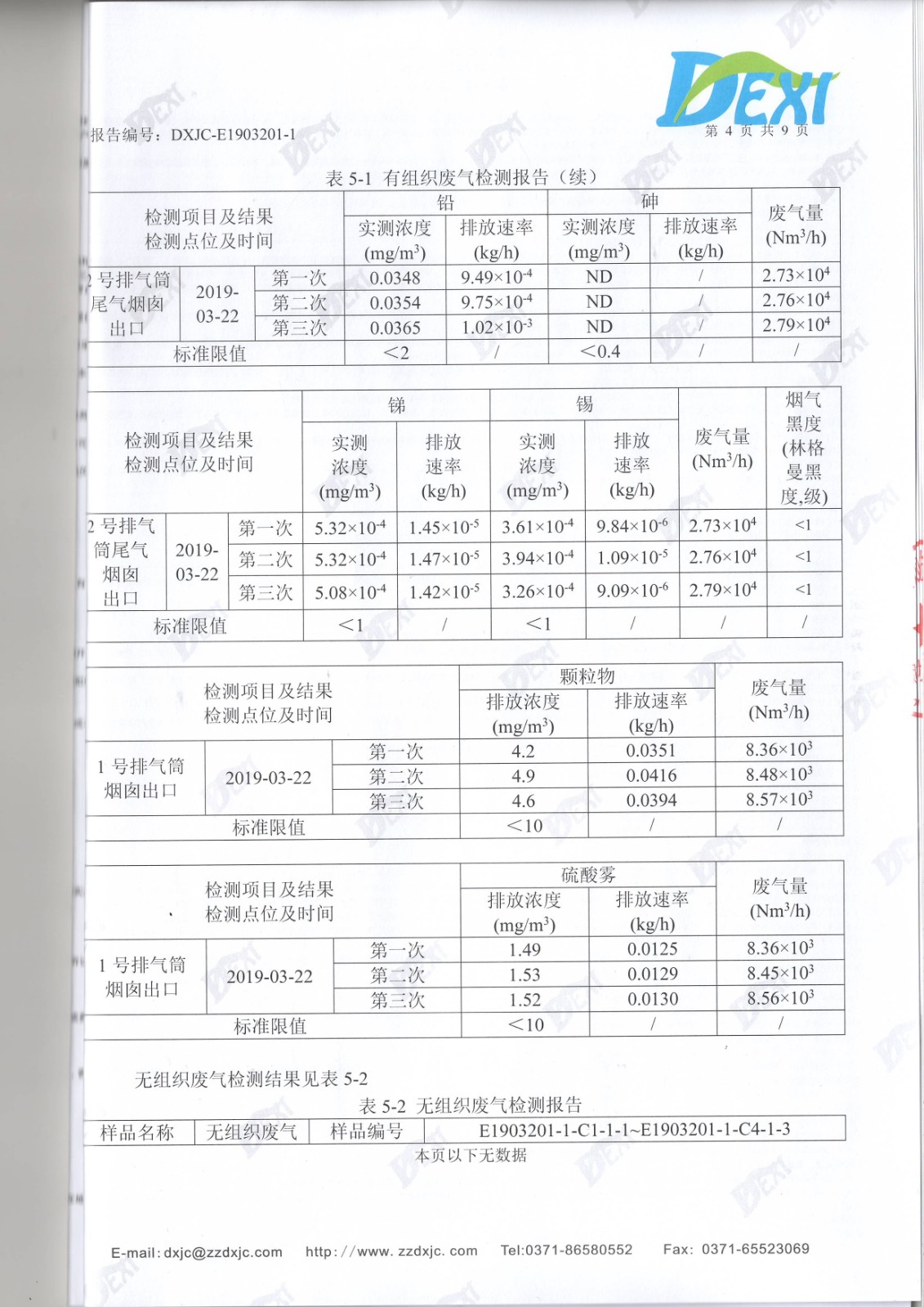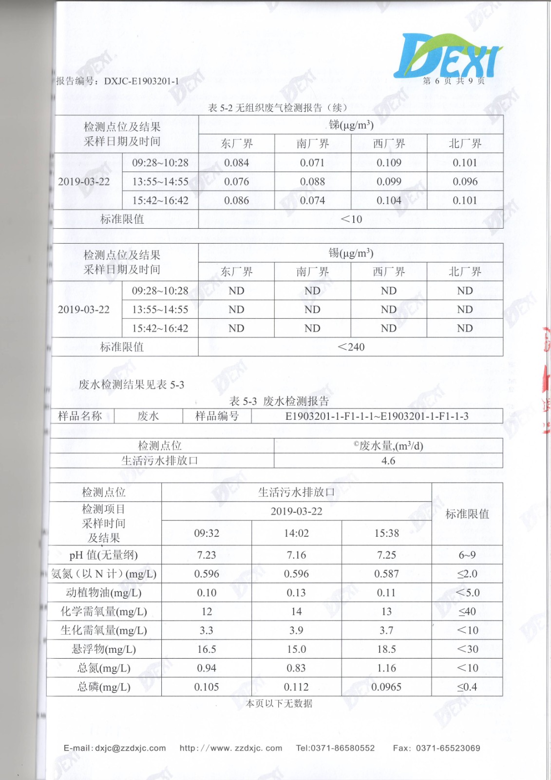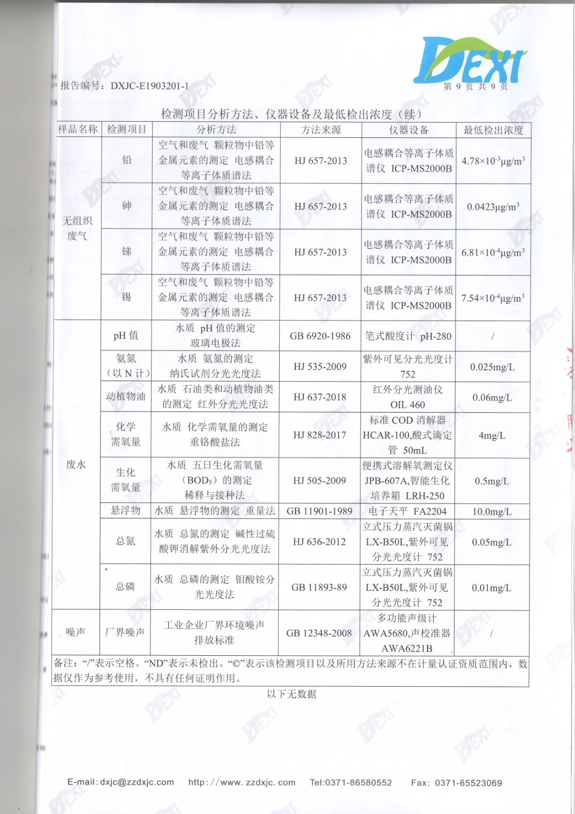 2019年3月廢水廢氣噪聲檢測