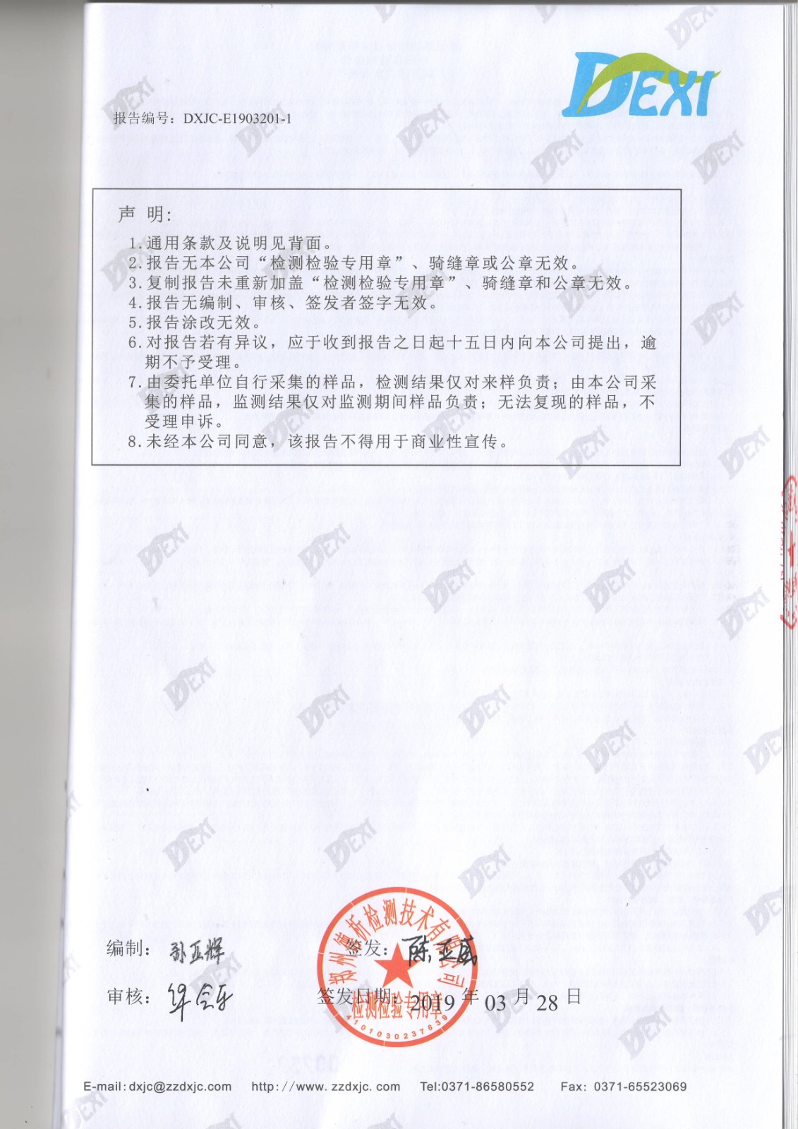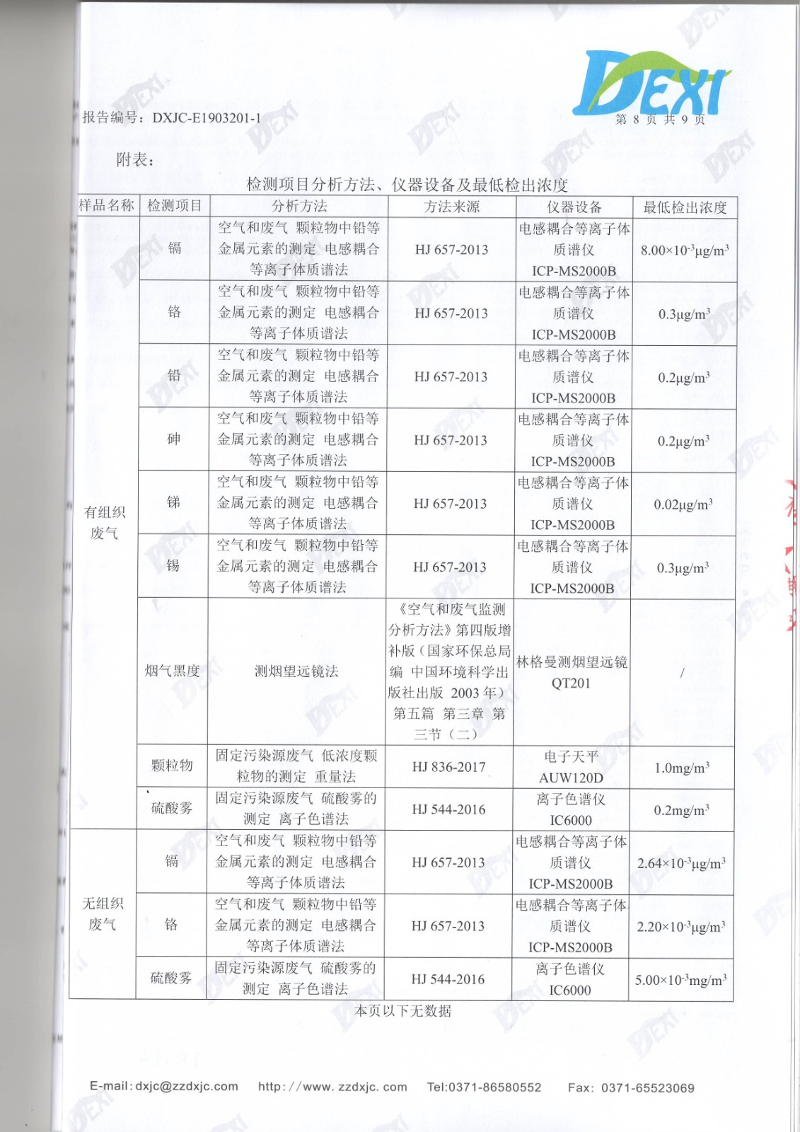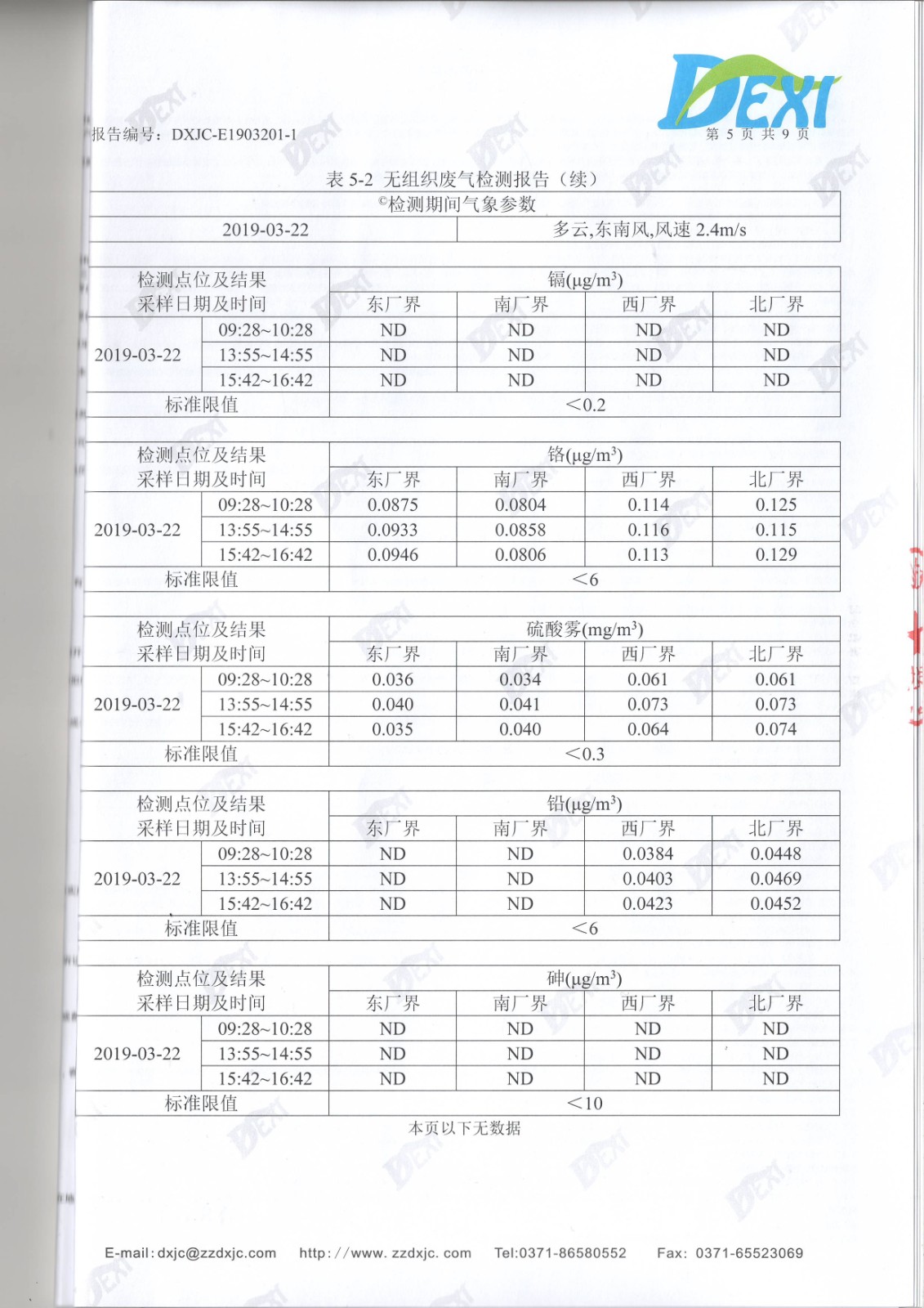 2019年3月廢水廢氣噪聲檢測