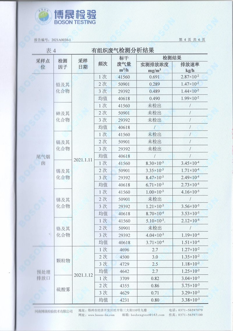 2021年1月份檢測報告