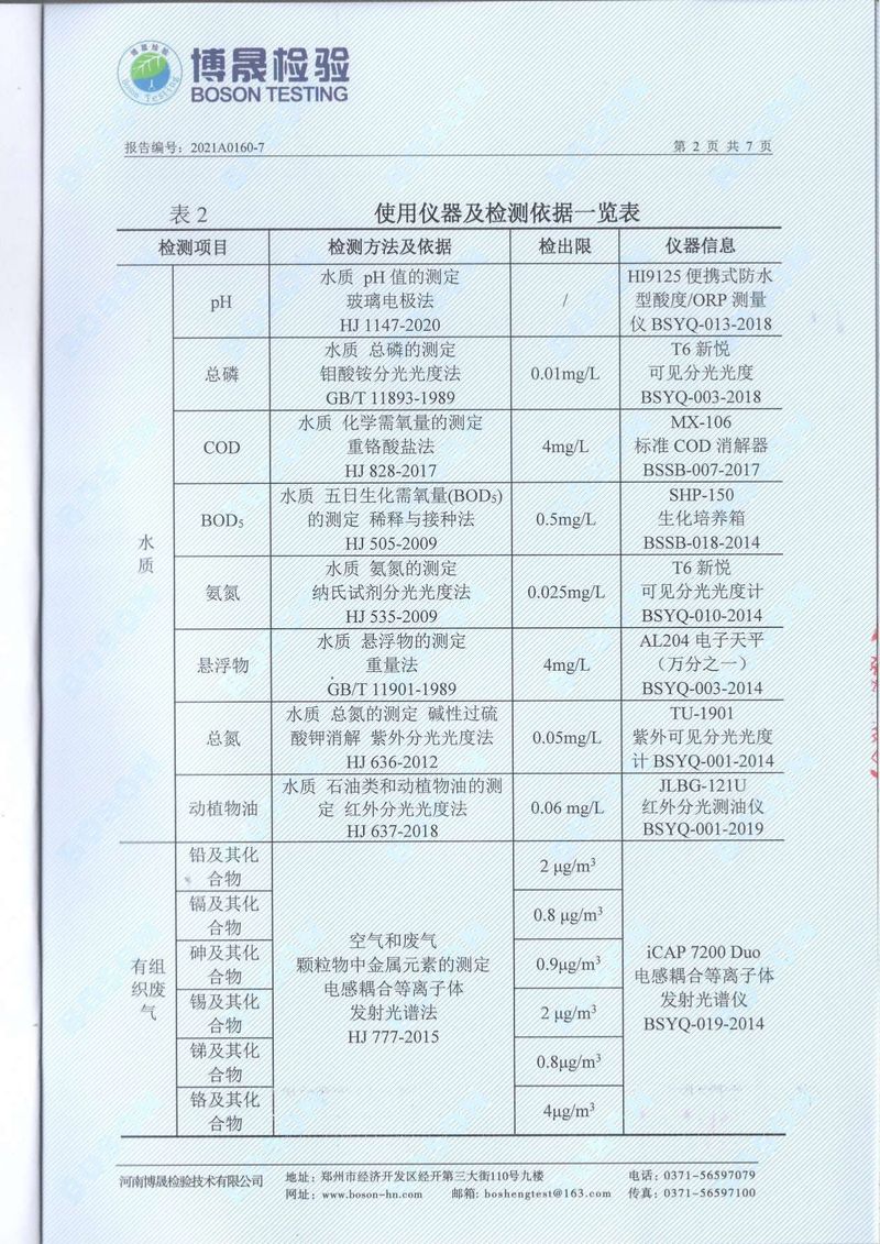 2021年7月廢氣廢水無組織噪聲檢測報告